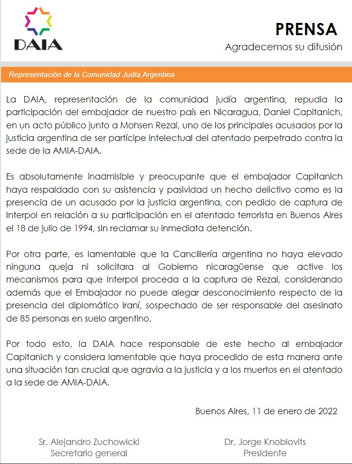 PLURAL JAI ADHIERE A REPUDIO POR PROFUGO IRANI EN NICARAGUA