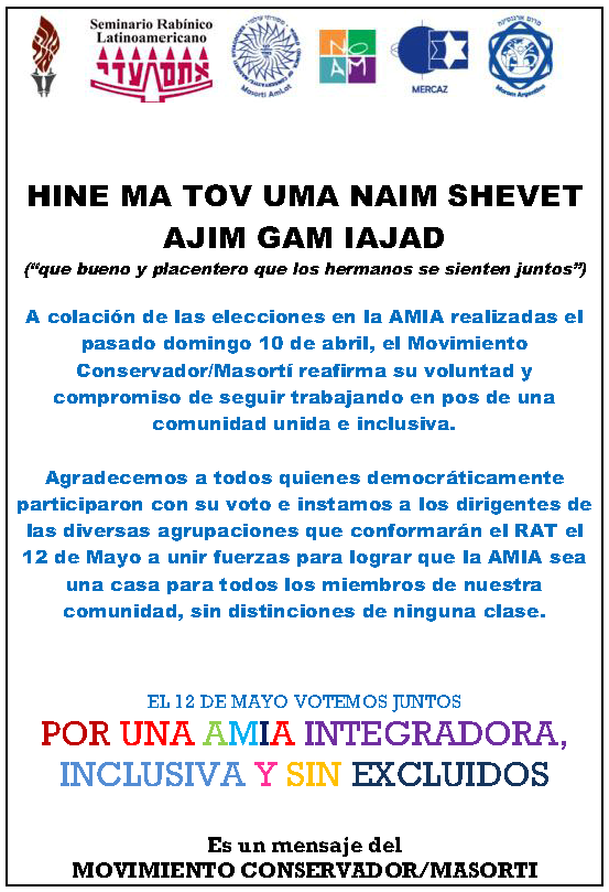 Autor Mov. Masortí Argentina Comunidad Cultura Derechos Humanos Discriminación Instituciones Juventud Minorías Política Religión Sociedad VotarGive it 1/5Give it 2/5Give it 3/5Give it 4/5Give it 5/5 Sin votos (todavía) Votar Deje este campo en blanco