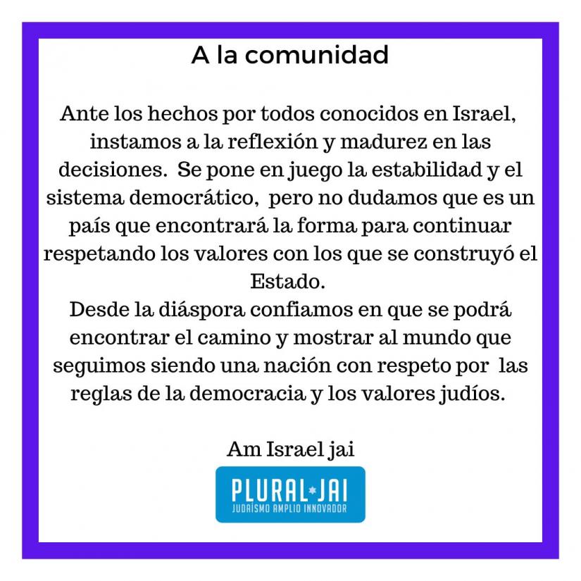 COMUNICADO DE PLURAL JAI Compartimos a la comunidad una reflexión en torno a lo sucedido en Israel Israel Política VotarGive it 1/5Give it 2/5Give it 3/5Give it 4/5Give it 5/5 Sin votos (todavía) Votar Deje este campo en blanco