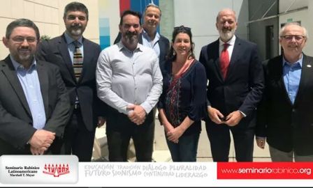La Delegación se encuentra acompañada por el Rab. Alejandro Avurj, Presidente de la Asamblea Rabínica Latinoamericana, el Rabino Ariel Stofenmacher, Rector del Seminario Rabínico, y el Sr. Miguel Toimaher, Presidente del Seminario Rabínico.